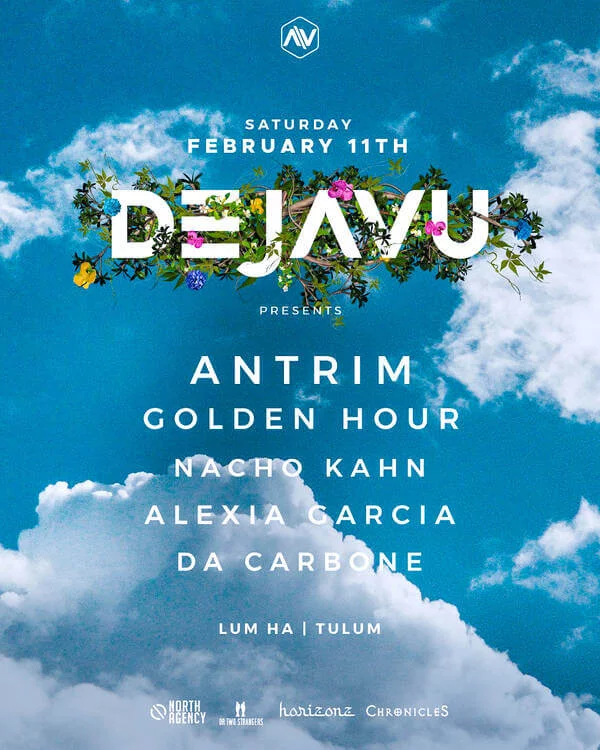 Dejavu at Lum Ha is a newer festival making it’s way onto the Tulum scene. With a lineup featuring ANTRIM, GOLDEN HOUR,NACHO KAHN,ALEXIA GARCIA,DA CARBONE. It’s only a one day event happening on February 11th but is sure to be a great time, and most likely to return next year in 2024.